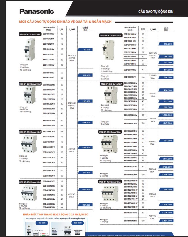 2. Bảng Giá Một Số Thiết Bị Điện Panasonic