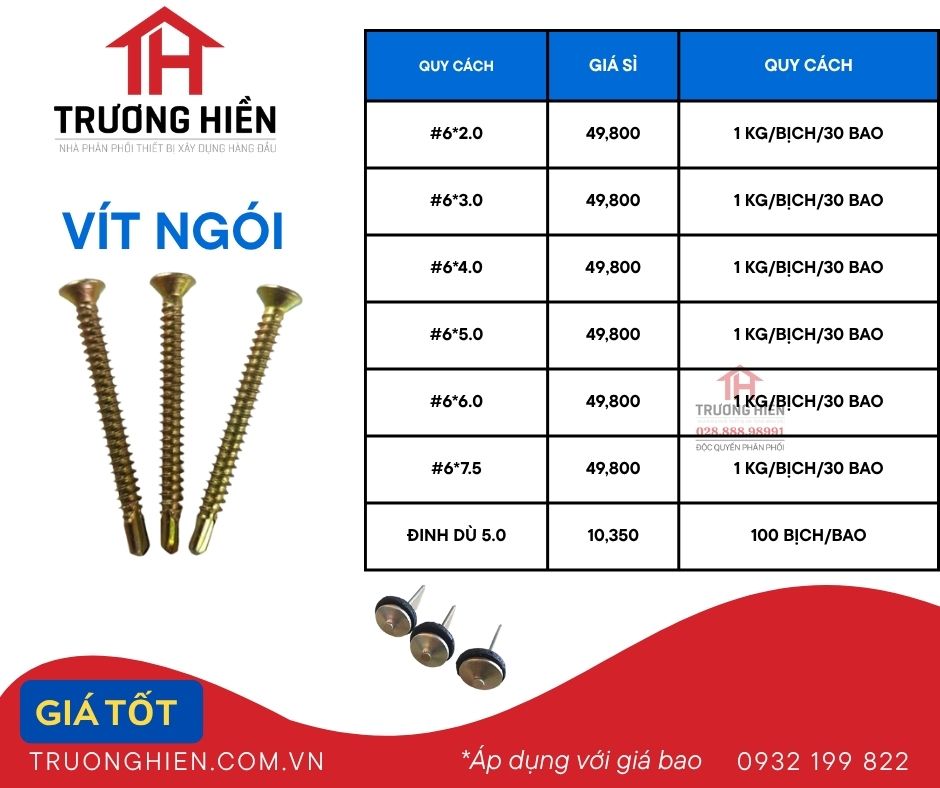 🔩 BẢNG GIÁ VÍT SÀN – VÍT TÔN – VÍT SẮC – VÍT NGÓI – VÍT THẠCH CAO GIÁ SỈ | TRƯƠNG HIỀN PHÂN PHỐI TOÀN MIỀN NAM