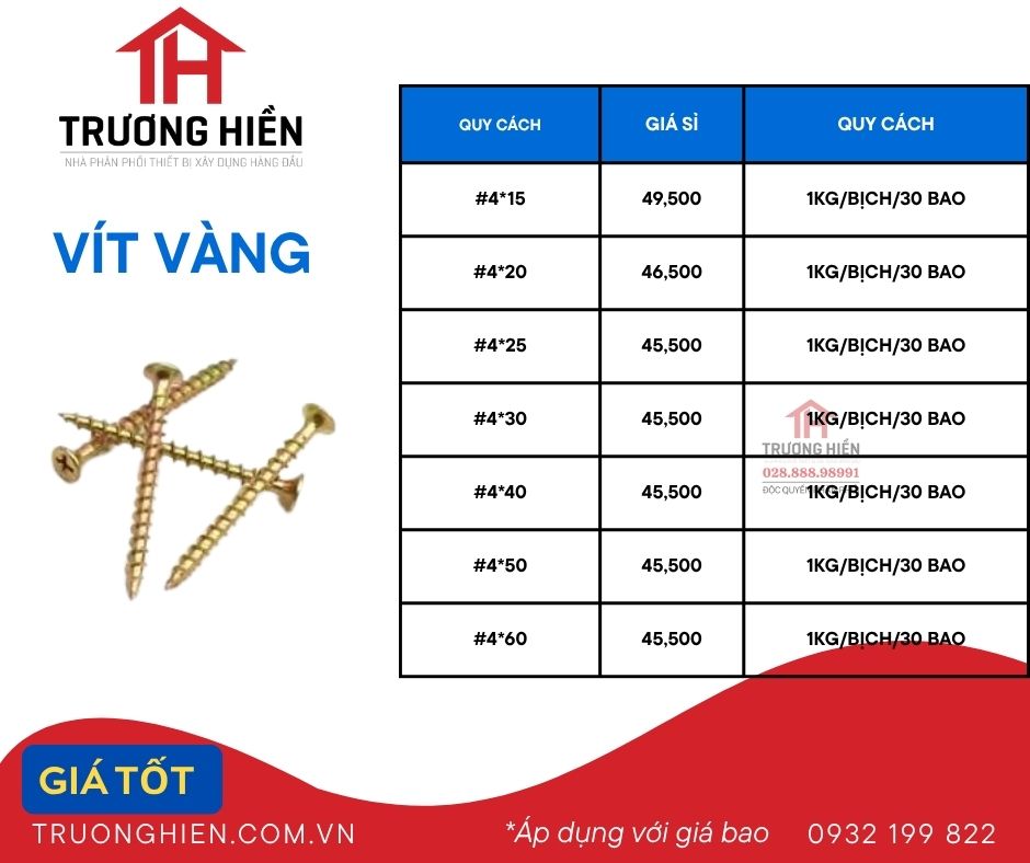 Tại Kho Đồ Sắt – Kim Khí Trương Hiền, chúng tôi luôn cập nhật bảng giá vít sỉ mới nhất mỗi tháng, đảm bảo mức giá cạnh tranh nhất miền Nam.