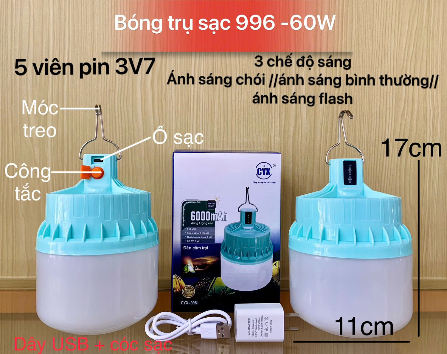 Bóng đèn sạc là loại bóng LED tích hợp pin sạc lithium bên trong. Khi có điện, bóng hoạt động bình thường và sạc pin. Khi mất điện, bóng tự động chuyển sang chế độ chiếu sáng khẩn cấp từ nguồn pin dự trữ, giúp không gian luôn sáng suốt.