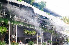 Đặt các vòi nước hoặc hệ thống phun sương trong sân, ban công hoặc khu vực ngoài trời để làm mát không gian. Phun sương giúp làm giảm nhiệt độ bằng cách tạo ra hơi nước nhẹ và làm mát không khí.