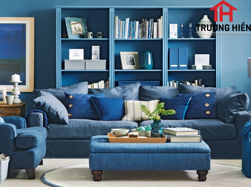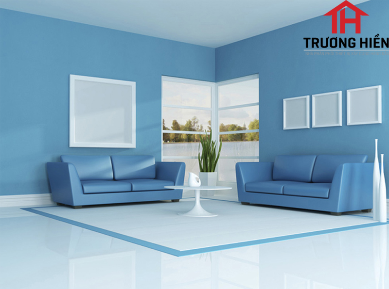 Sơn nhà màu xanh nước biển cho phòng khách để tạo nên vẻ sang trọng.