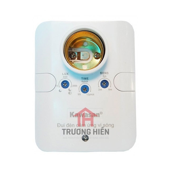 - Ta lắp đặt cảm ứng nối với bóng đèn và điều chỉnh sao cho góc quét hướng về phía có người di chuyển, sau đó điều chỉnh 2 nút: nút thời gian tắt đèn và độ sáng cảm ứng.