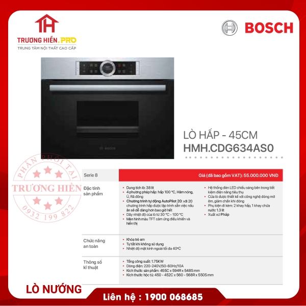 Xuất xứ: Lò nướng Bosch thương hiệu hàng đầu của Đức được sản xuất ở Tây Ban Nha một quốc gia có truyền thống lắp ráp thiết bị nhà bếp cao cấp uy tín hàng đầu thế giới.