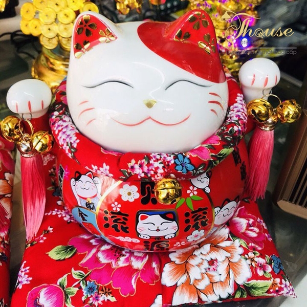 Mèo Thần Tài Đỏ Giơ Hai Tay – Đa Phú Quý