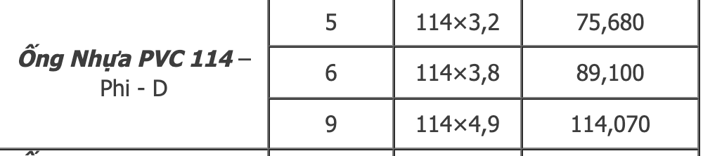 1. Ống nhựa Bình Minh 114 giá bao nhiêu?