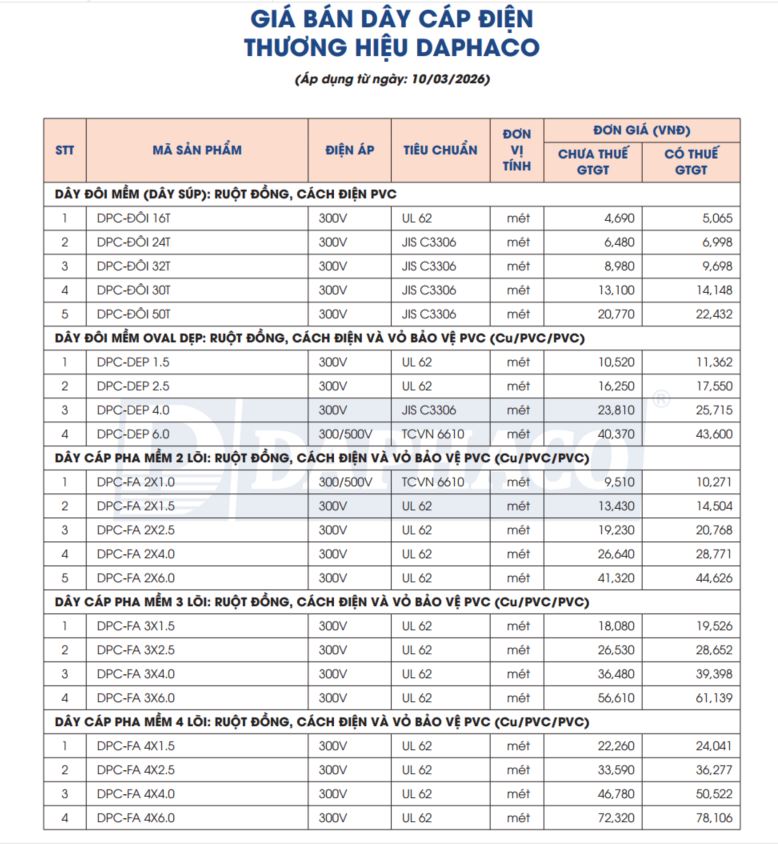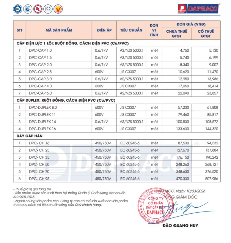 Trực tiếp phân phối cáp điện LION – DAPHACO từ nhà máy.