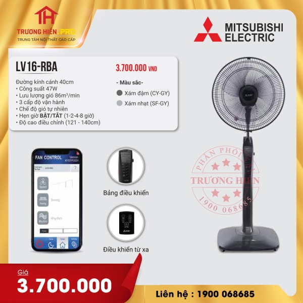 Quạt cây Mitsubishi LV16-RBA CY-GY Xám Đậm - Điều khiển từ xa tiện lợi