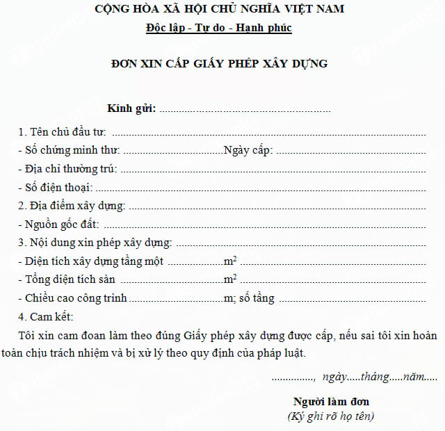 - Đơn đề nghị cấp giấy phép xây dựng nhà cấp 4.
